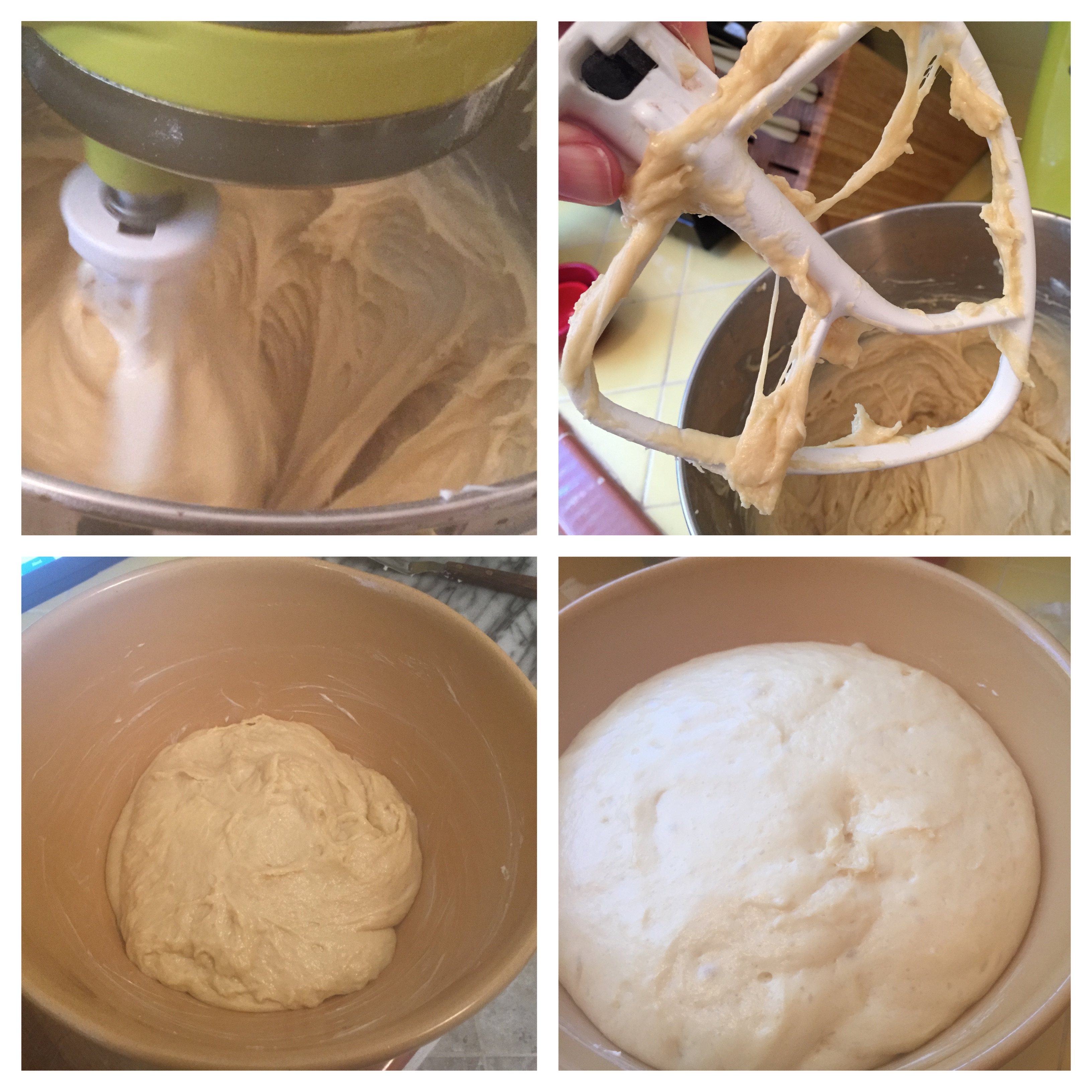 Continue to beat for another 4-5 minutes after all the butter is in until the dough is shiny and pulls lacy strands from beater to bowl.