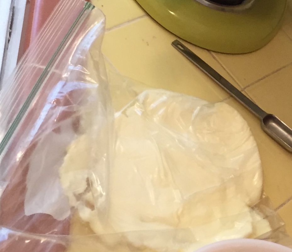 voila, a YouTube video where you put the cold butter into a large Ziploc and smack it around with your rolling pin. Ha! Never knew, works a treat. And fun! (Full disclosure, I smacked a brick of butter with a rolling pin in France, but there was no Ziploc and no witness.) You can also smack the butter between two sheets of waxed paper.
