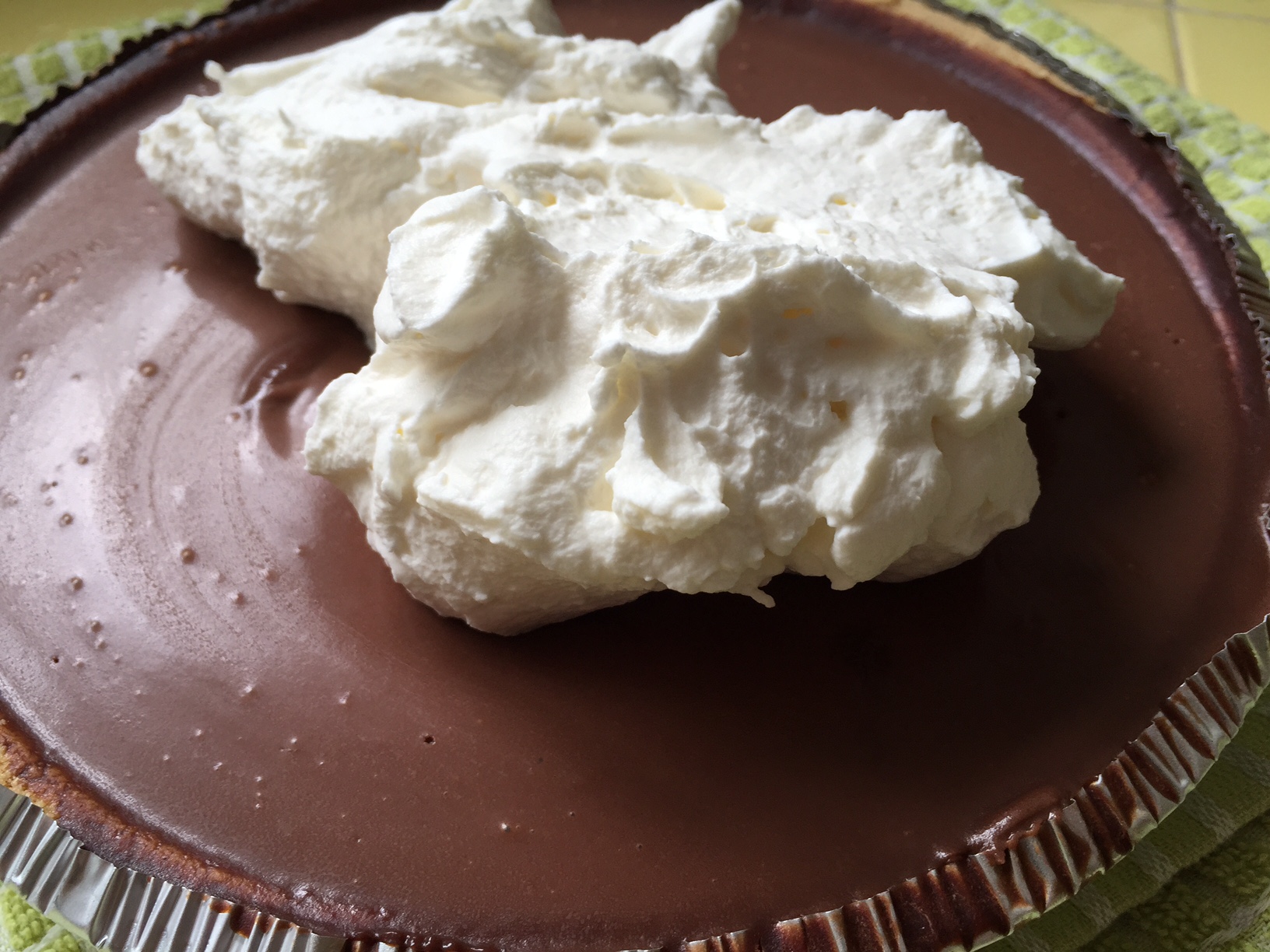 When it comes to chocolate pie, in my book, if it ain’t got a graham cracker crust, it ain’t really chocolate pie. Similarly, if the pudding wasn’t made on the stove from scratch…it ain’t the real deal. (Although in college we did enjoy the big cheat: Store-bought crust, Jell-O instant pudding and Cool-Whip. Toothy enough for a 20 year old and easily made in a dorm room.) I still use store-
