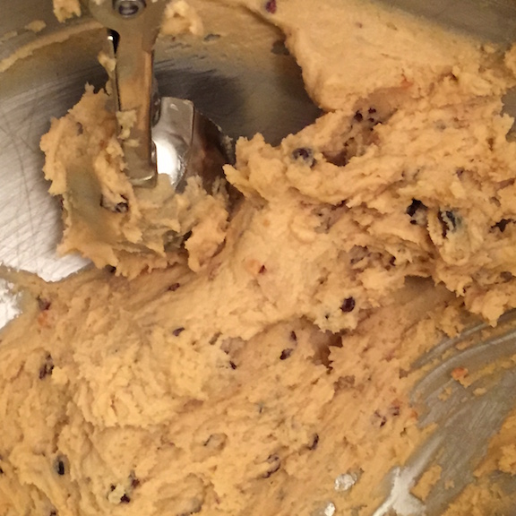 This is a recipe from Epicurious. I don’t make any changes to it. The dough is sticky sticky sticky. Scarily so. Be brave, dear reader, and don’t add a ton more flour to make it easier to handle! Just roll it around on your lightly floured work surface until you can take your hand off it without taking half of it with you. It can be done. I have a “vintage” kitchen that has tiled countertops (the horror!), so I work on a marble slab. And use a bench scraper to nudge my mound of dough off the marble and onto the prepared baking sheet.
